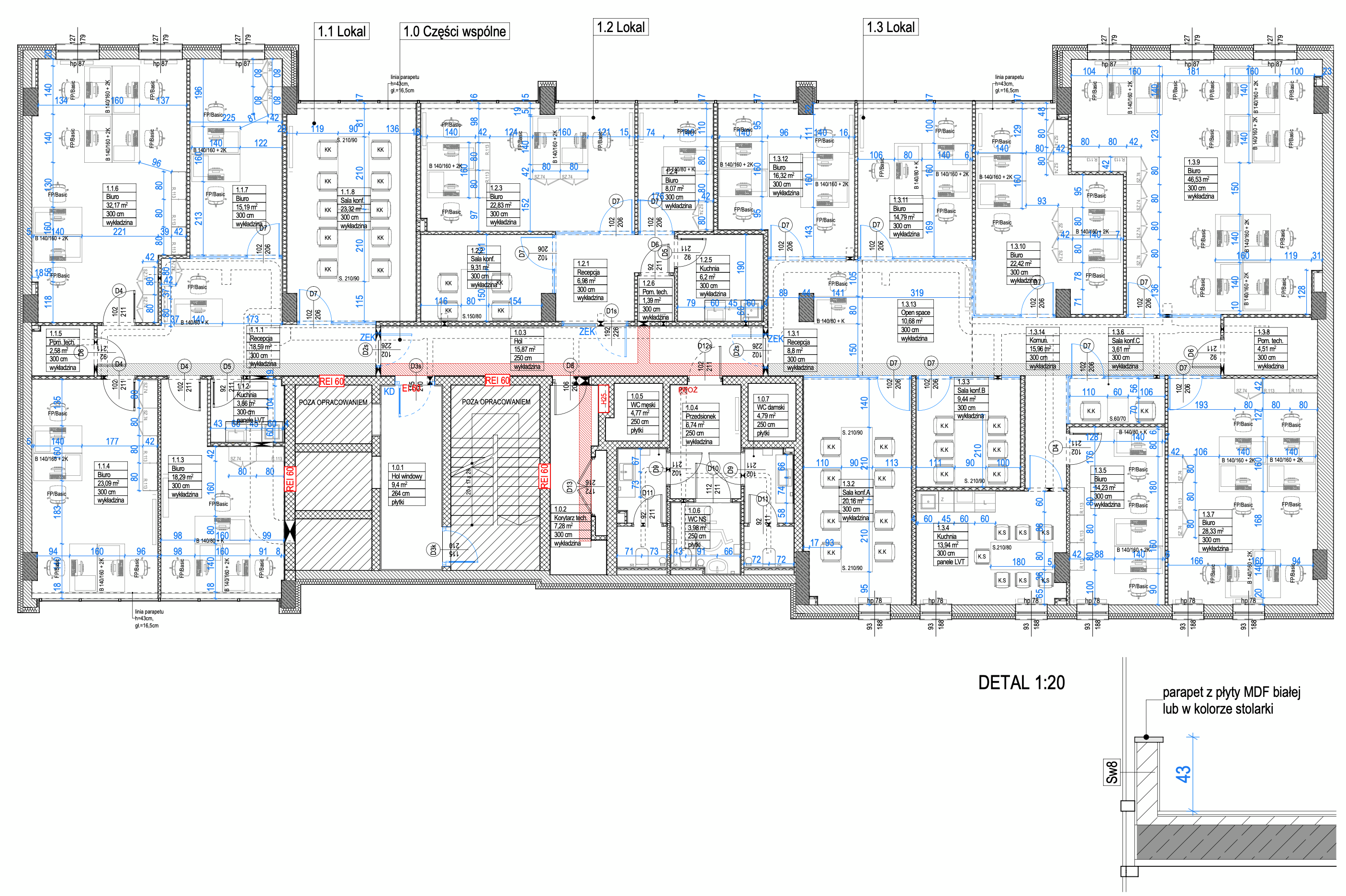 • Modern office spaces with various sizes